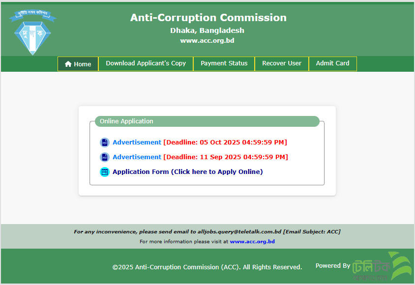 ACC Job Circular 2025 Apply Online acc.teletalk