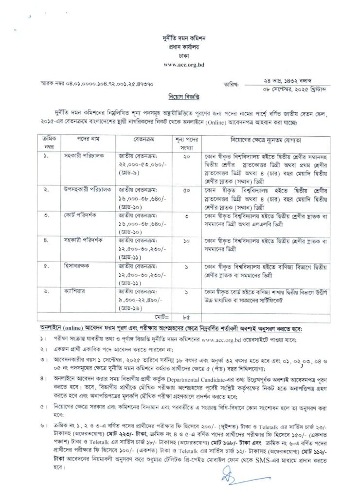 - তথ্য লিঙ্ক: www.acc.org.bd (প্রতিষ্ঠানের আপডেটের জন্য)।