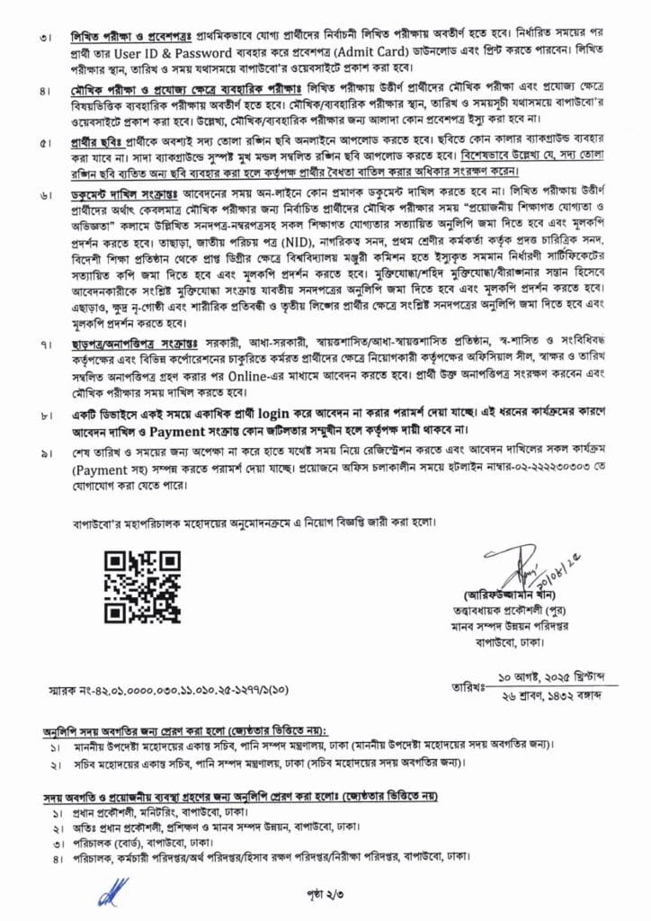 Always refer to the official BWDB recruitment page for details at jobs.bwdb.gov.bd.