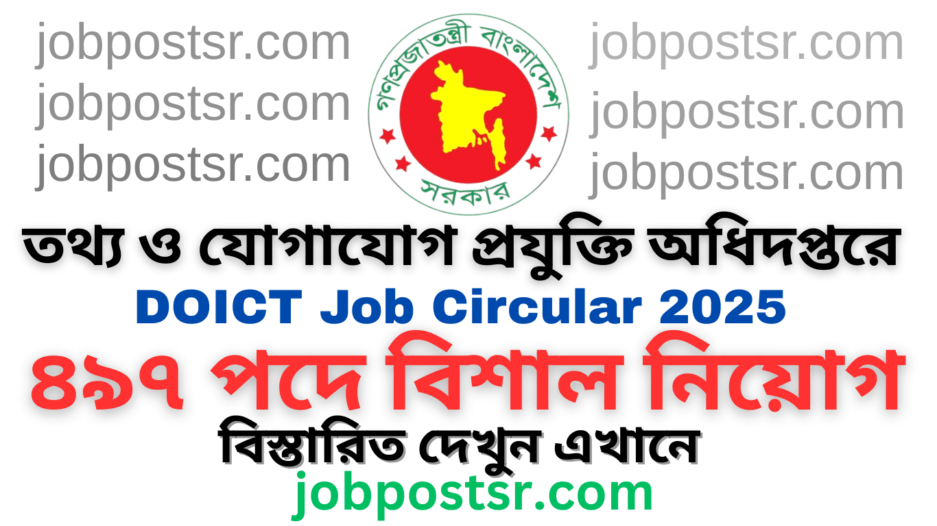 The ministry of Posts Telecommunications and Information Technology Government of Bangladesh DOICT Job Circular 2025 has been published ...
