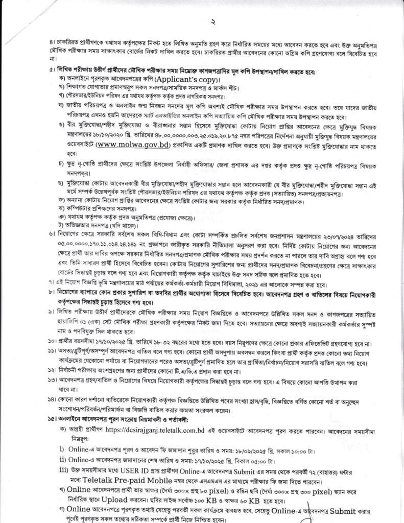• Exam date will be published on sirajganj.gov.bd and Teletalk portal