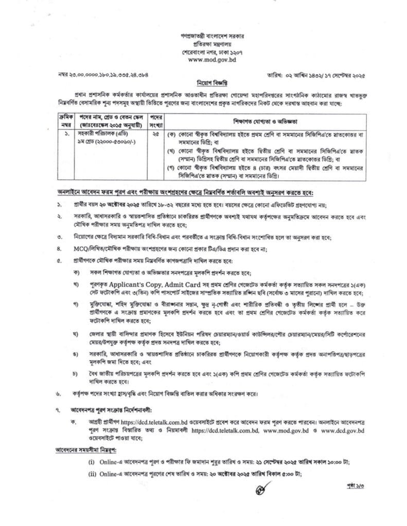 - Ministry of Defence DCD Job Circular 2025 Apply Online