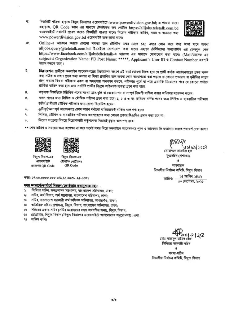 PD New job circular 2025 has been published on 30 September 2025 in the daily newspaper and www.powerdivision.gov.bd. A total of 34 people will be hired for 04 categories of posts through this PD circular 2025. The job application will start on 07 October 2025 at 10:00 AM and will end on 27 October 2025 at 5:00 PM. You Can Apply For This Job PD Job Application Website Is Apply Online at pd.teletalk.com.bd
