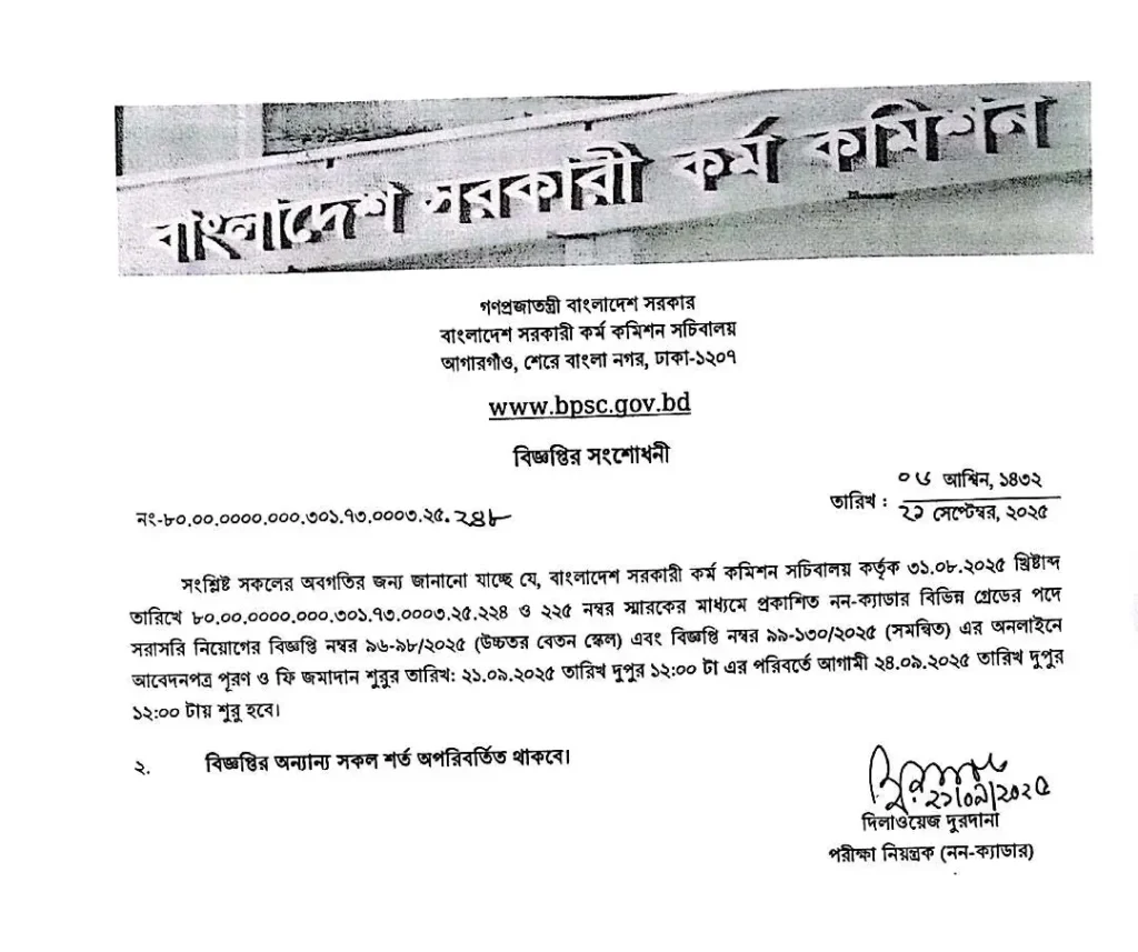 BPSC Non Cadre Job Circular 2025.