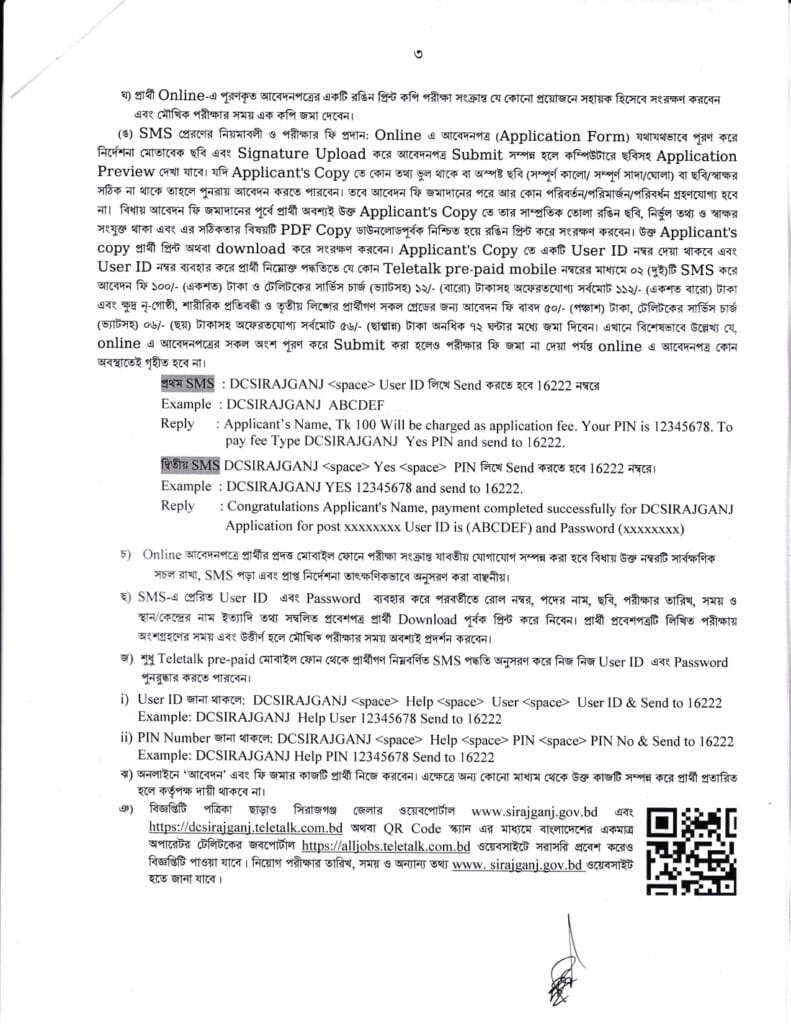 👉 আবেদনের লিঙ্ক: https://dcsirajganj.teletalk.com.bd।